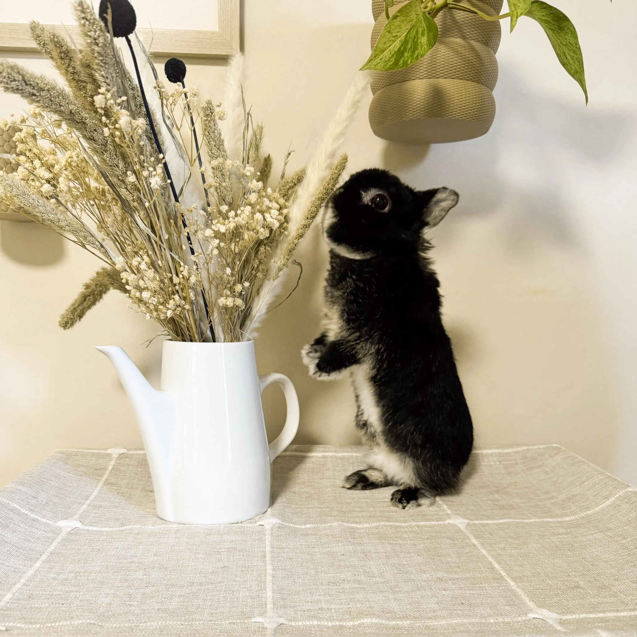 Tasha is a mini rex and has a luxurious velvet coat that is heaven to stroke. She is looking for a human who wants nothing more than to pet her and she would like you to quit your job so that you can do this continuously. She only has one rule, that you pet her while she is on the ground or a stable surface. She is not the biggest fan of being picked up and tends to nip you to remind you of her rule.
